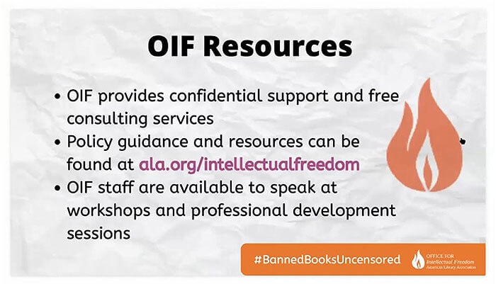 The Office for Intellectual Freedom director warned the viewers: