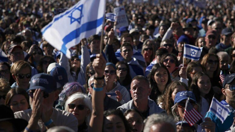 According to estimates from the rally’s organizers, the Jewish Federations of North America and the Conference of Presidents of Major American Jewish Organizations, an estimated 290,000 people attended the march in person and 250,000 more watched online.